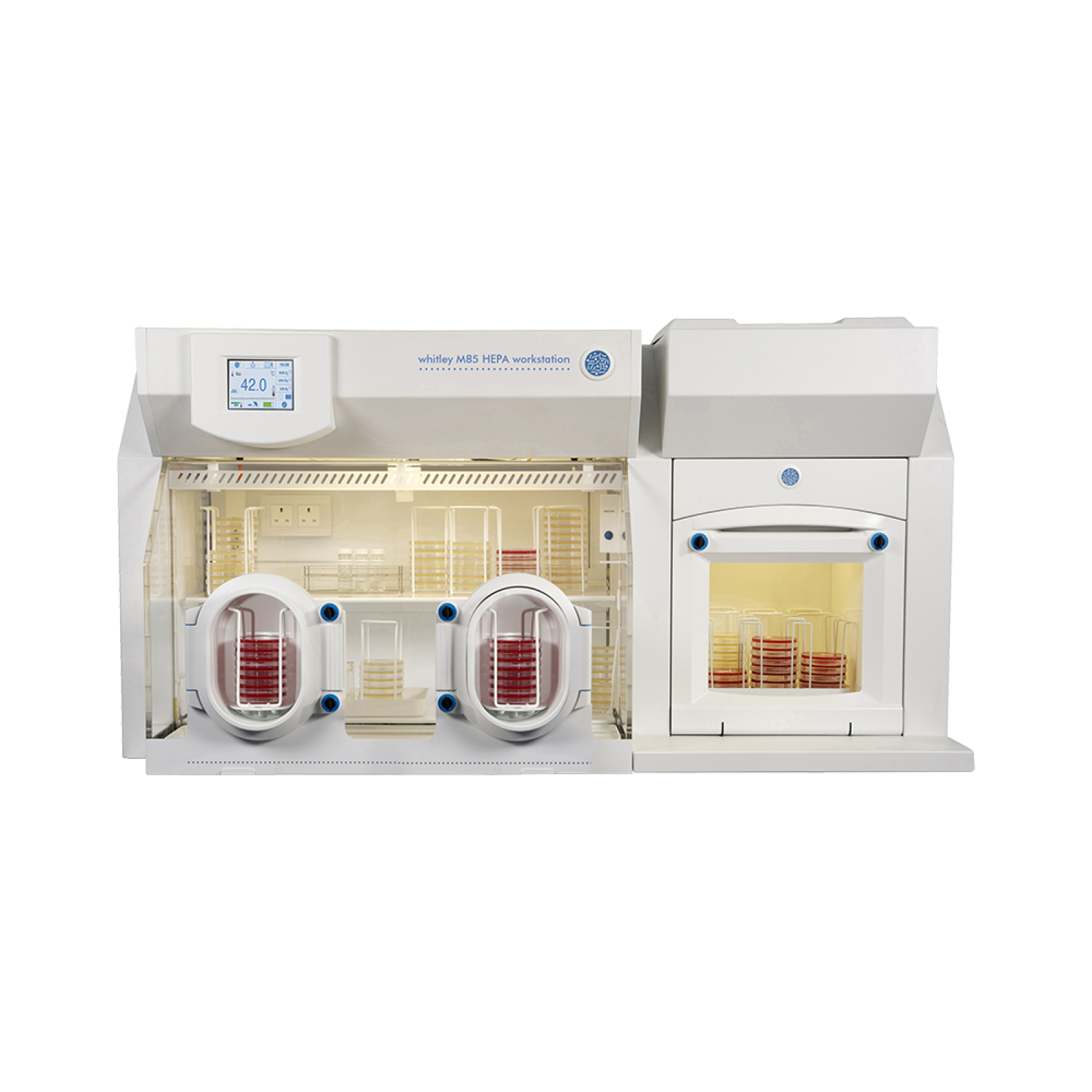 Die Whitley M85 Arbeitsstation kann optional mit HEPA-Filterung geliefert werden, um einen Reinheitsgrad der Atmosphäre im Inneren der Arbeitsstation zu erreichen, der die Anforderungen der ISO 14644 Klasse 3 übertrifft. Mit dem einzigartigen internen HEPA-Filtersystem von Whitley wird die gesamte Atmosphäre Hunderte Male pro Stunde durch den Filter geleitet, um eine schnelle Reinigung der Kammerumgebung zu gewährleisten. Die DWS-Filter befinden sich im Inneren des Arbeitsplatzes, wodurch verhindert wird, dass der Filter mit Feuchtigkeit gesättigt und dadurch unwirksam wird. Anstatt Filter von der Stange zu verwenden, hat DWS mit einem der weltweit führenden Filterhersteller zusammengearbeitet, um einen Filter zu entwickeln, der speziell auf diese Arbeitsstation zugeschnitten ist.