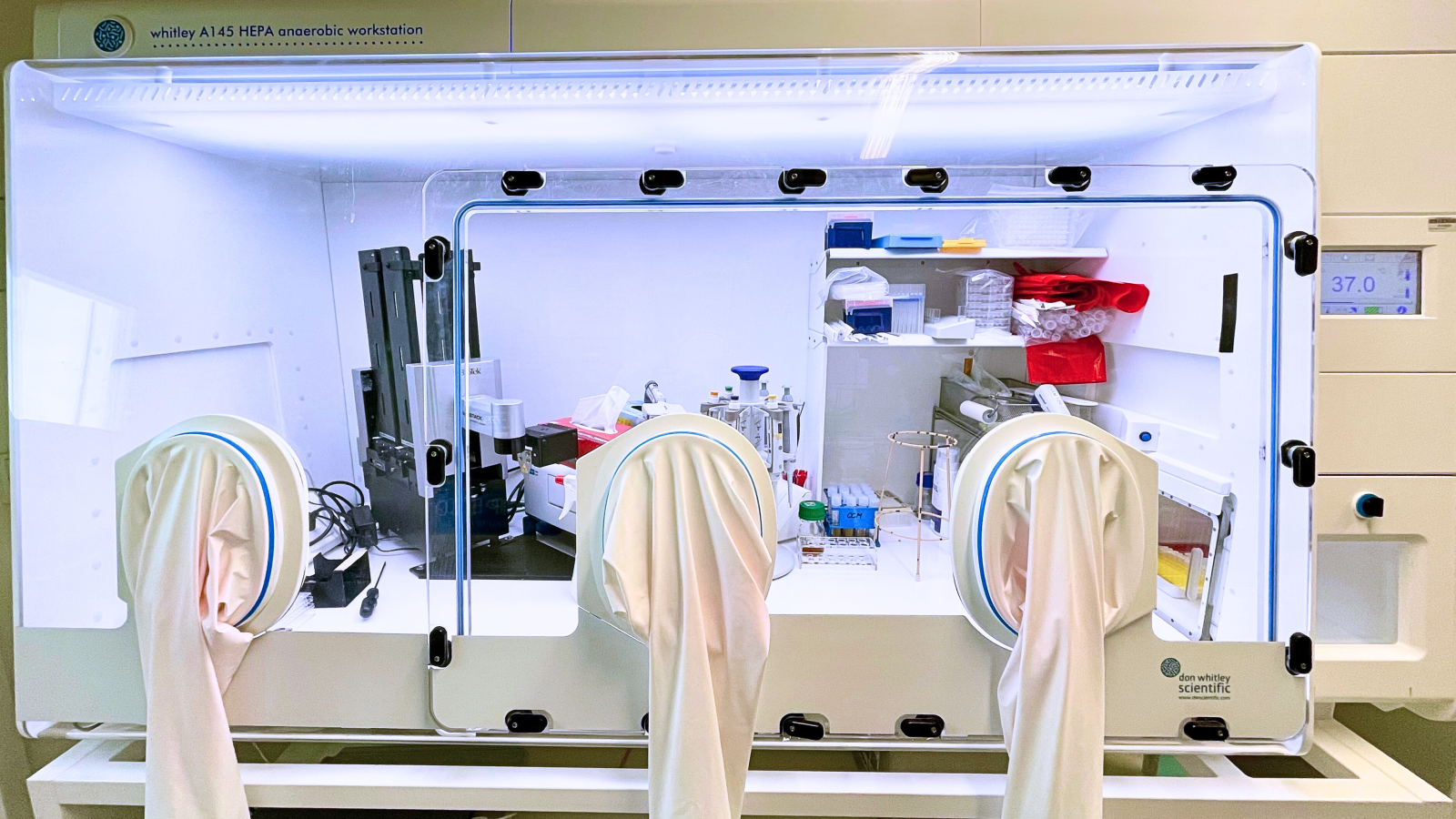 Die Whitley A145 HEPA-Arbeitsstation ist eine hohe, breite anaerobe Arbeitsstation, die mit dem einzigartigen internen HEPA-Filtrationssystem ausgestattet ist. Wie unsere anderen anaeroben Kammern bietet sie ausgezeichnete Bedingungen für die Verarbeitung, Inkubation und Untersuchung von Proben ohne Exposition gegenüber atmosphärischem Sauerstoff.