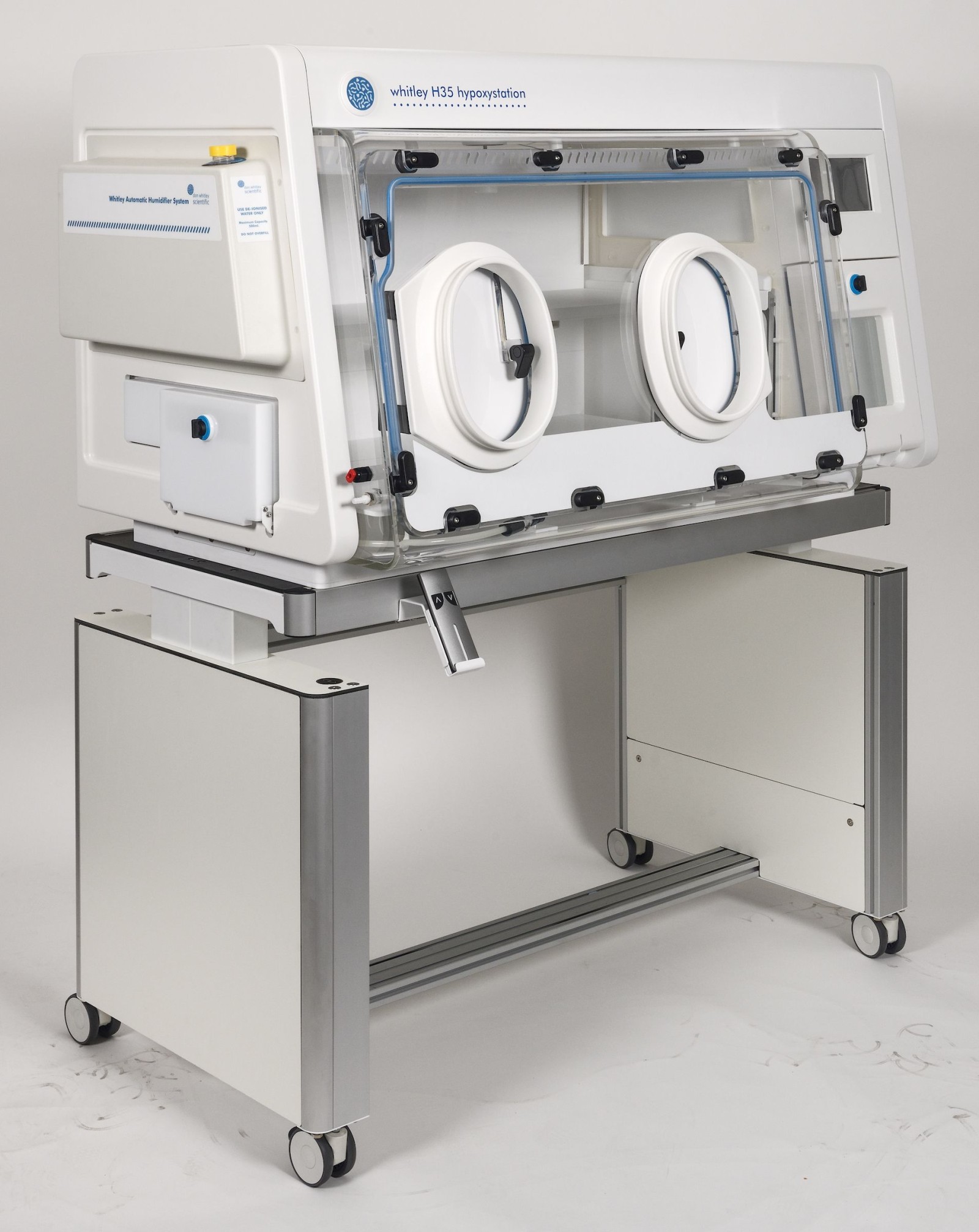 Dieser motorisierte, höhenverstellbare Trolley ermöglicht es, die Höhe der Arbeitsstation vor Ort anzupassen, um verschiedenen Nutzern im Labor gerecht zu werden. Trespa – ein hochdrucklaminiertes Material, das häufig in Laboren verwendet wird – wird für die Seitenwände verwendet, da es sich leicht reinigen lässt. Dieser Wagen ist für die Whitley A, H oder M95 Arbeitsstation geeignet.
