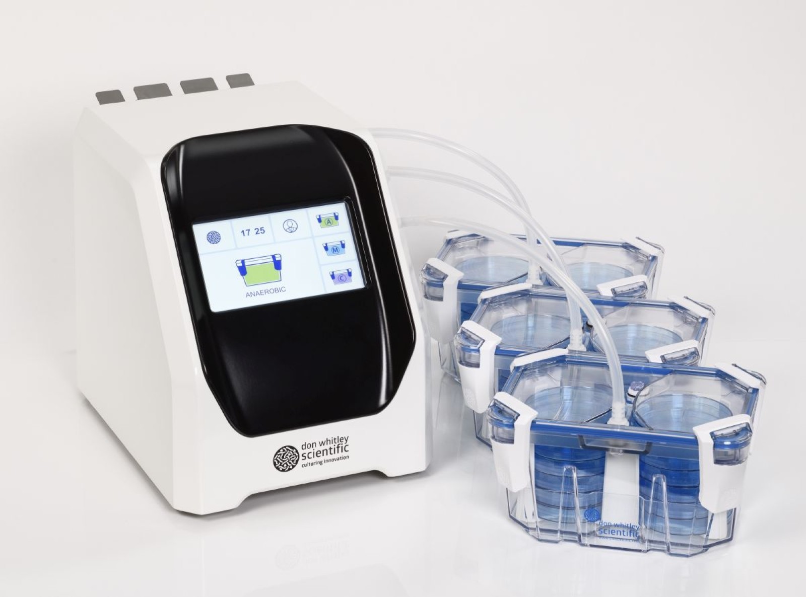 Enables the Whitley AtmoGen to be connected to, and simultaneously gas, three jars with the same atmosphere at once.