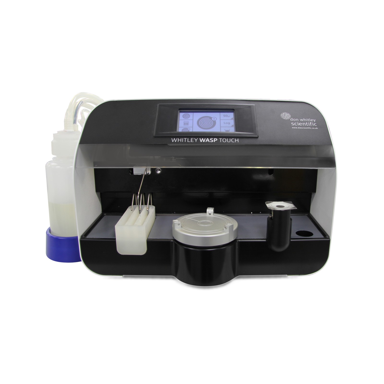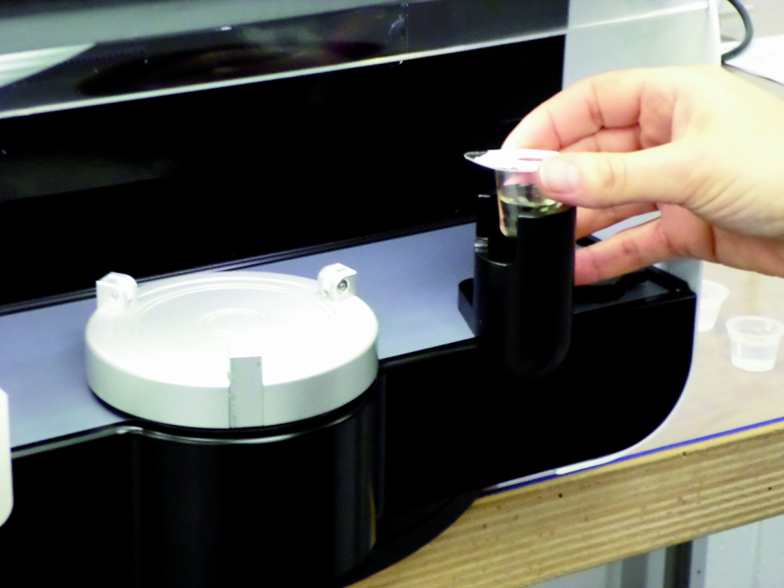 Für Kunden, die den Arbeitsaufwand bei der Durchführung von Serienverdünnungen weiter reduzieren möchten, bietet diese Option einen angepassten WASP Touch, der die Probenaufnahme aus einem einzelnen Dilucup® ermöglicht. Die Drehrichtung des Drehtellers wurde bei diesem Modell umgekehrt. Die Betriebssoftware ist gegenüber dem Standard-WASP Touch unverändert, mit der Ausnahme, dass die Probenaufnahme aus einem Röhrchen/Flasche deaktiviert wurde.