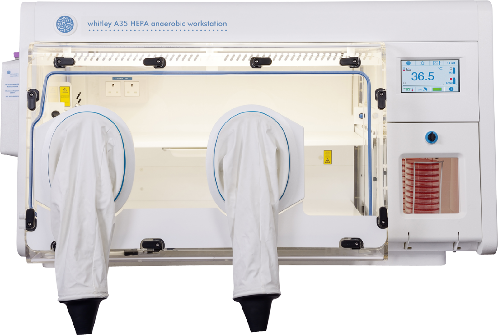 The Whitley A35 Workstation can be supplied with the option of HEPA filtration to provide levels of atmospheric cleanliness inside the workstation that exceed the requirements of ISO 14644 Class 3. With the unique Whitley Internal HEPA Filtration System, all the atmosphere passes through the filter hundreds of times an hour to ensure the chamber environment is cleaned quickly. DWS filters are located inside the workstation, which prevents the filter becoming saturated with moisture and rendered ineffective. Rather than use off-the-shelf filters, DWS has worked with one of the world's leading filter manufacturers to develop a filter specifically tailored to suit this workstation.
