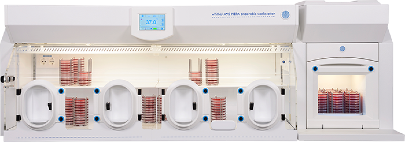 The Whitley A95 Workstation can be supplied with the option of HEPA filtration to provide levels of atmospheric cleanliness inside the workstation that exceed the requirements of ISO 14644 Class 3. With the unique Whitley Internal HEPA Filtration System, all the atmosphere passes through the filter hundreds of times an hour to ensure the chamber environment is cleaned quickly. DWS filters are located inside the workstation, which prevents the filter becoming saturated with moisture and rendered ineffective. Rather than use off-the-shelf filters, DWS has worked with one of the world's leading filter manufacturers to develop a filter specifically tailored to suit this workstation.