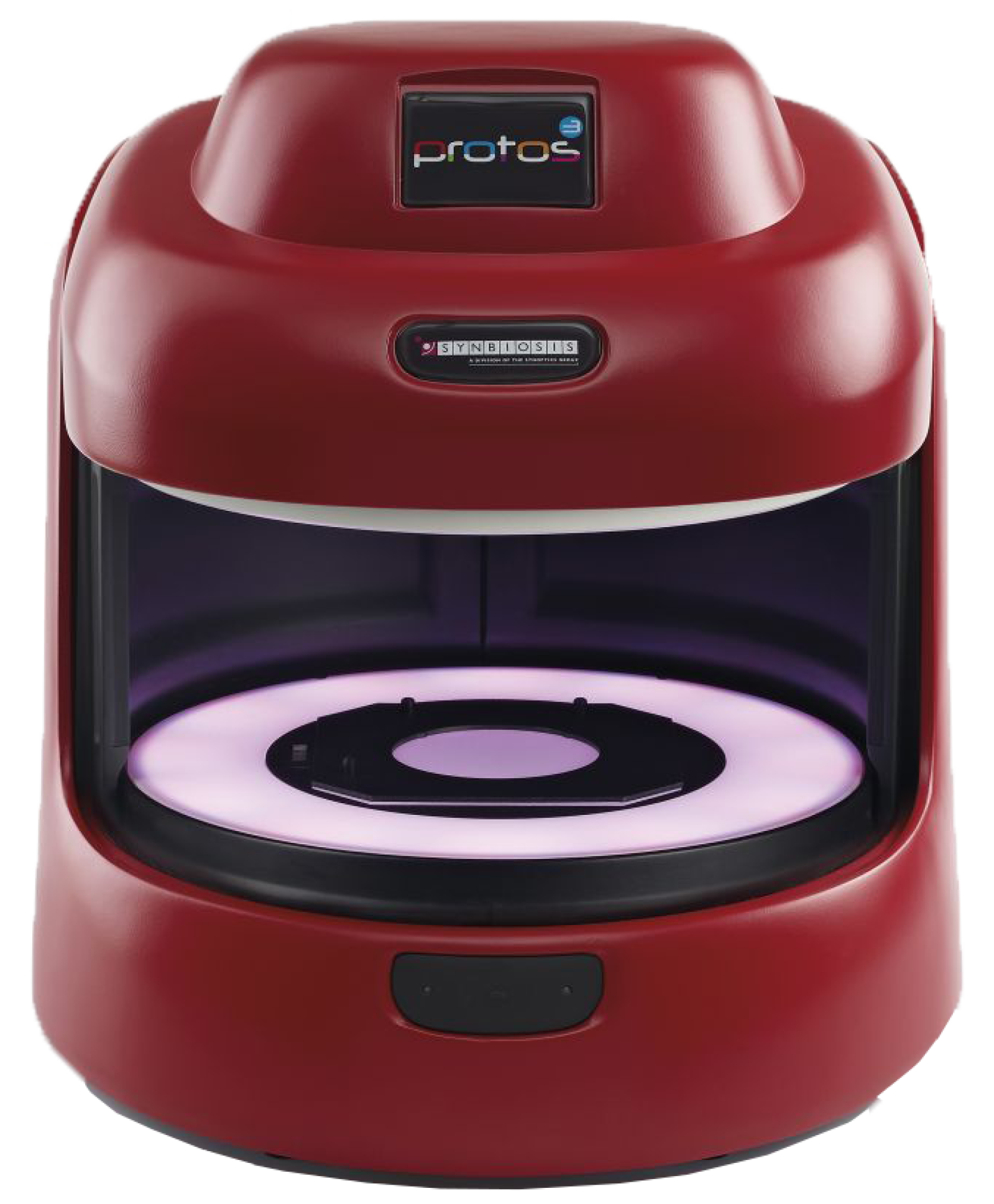 Protos 3 is an automated colony counter that uses a sensitive CCD camera and powerful analysis software. The software is able to identify and discriminate colonies by colour, size and shape. The system will identify background agar and also identify and eliminate debris from plate images.