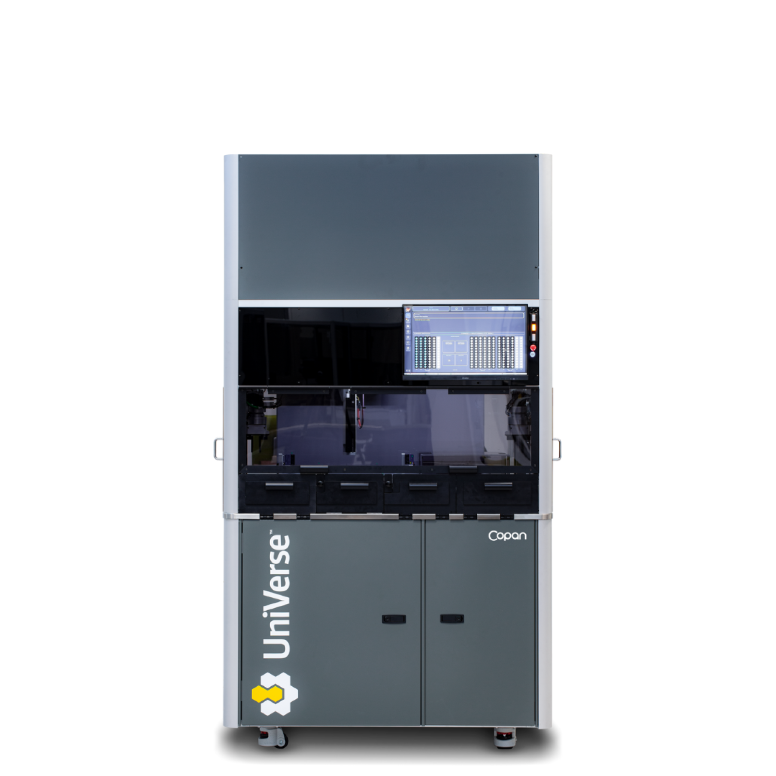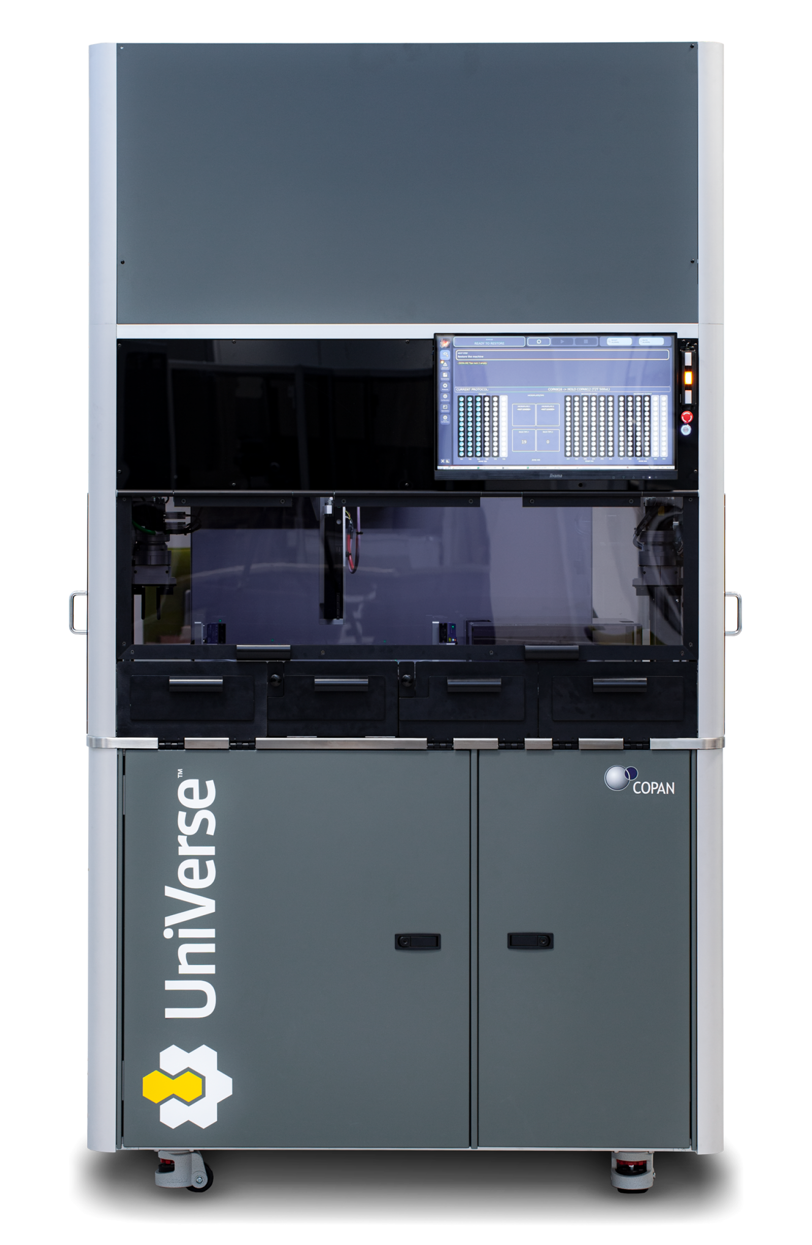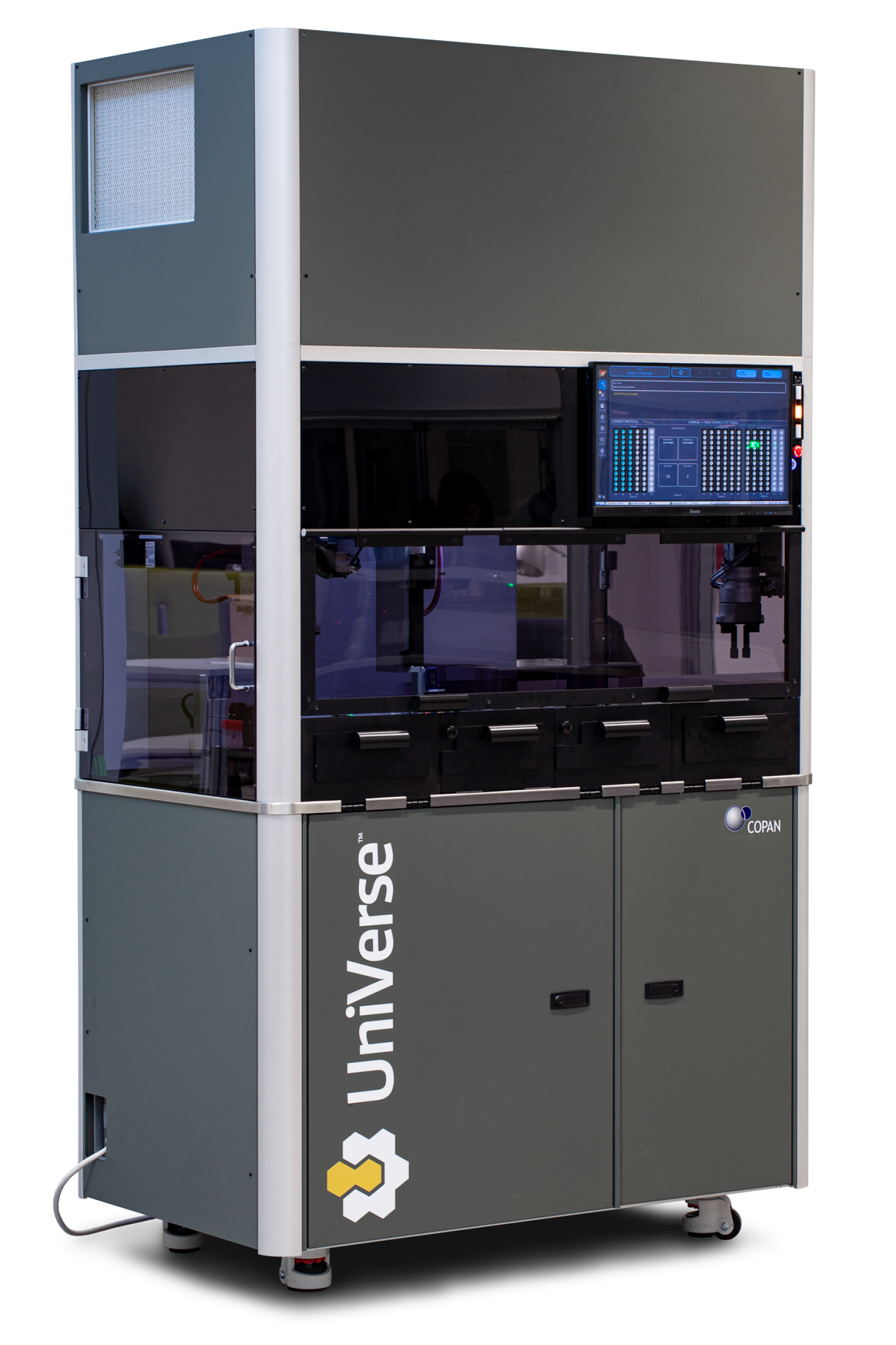 UniVerse® is a high-throughput automation system that automatically aliquots samples received in the laboratory prior to molecular diagnostic testing. The automation of this pre-analytical step consolidates, integrates, and standardises the subsequent molecular analysis. Compatible with any molecular platform, UniVerse® manages multiple liquid protocols, boosting a laboratory’s productivity to 130 tubes per hour or 220 x 96-well plate samples per hour.