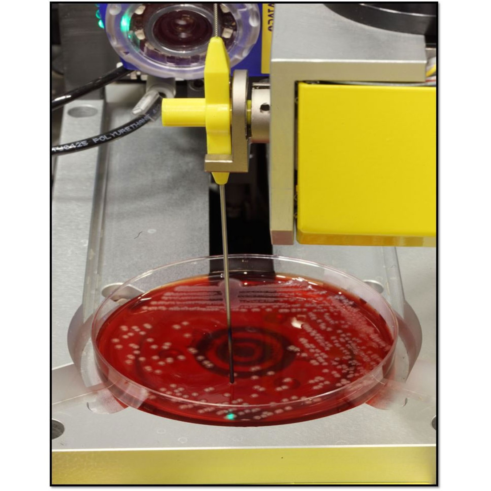 - De-caps, inoculates, streaks, labels and then re-caps without operator intervention.