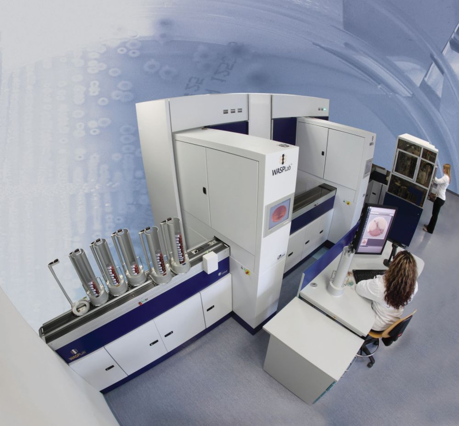 WASPLab® is a complete robotic specimen processing system for front end pre-analytics in microbiology. It is a fully automated, barcode-driven, conveyor-connected system with remote plate image analysis and automatic incubation.