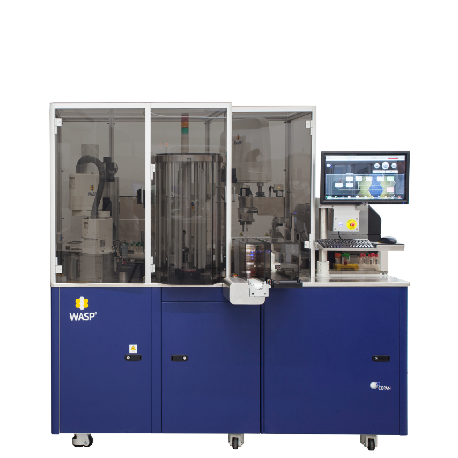 WASP® is Copan’s renowned Walk Away Specimen Processor, an instrument that fully automates all aspects of liquid-based bacteriological specimen processing: plate inoculation and streaking, Gram slide preparation, broth inoculation, and AST plate streaking.