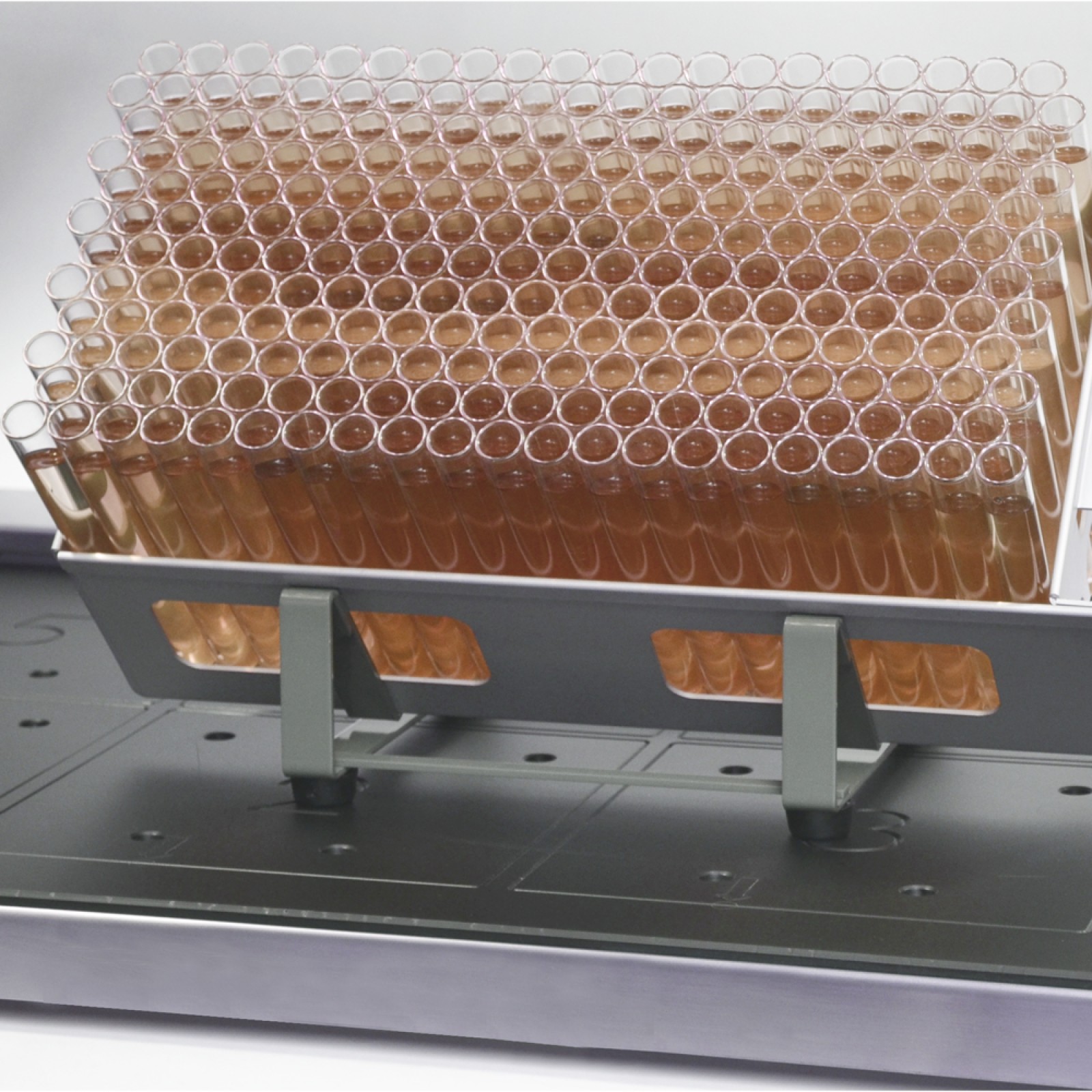 Racks are autoclavable, as is the tubing, therefore it is possible to fill tubes and bottles pre-sterilisation or fill aseptically from a media preparator or other sterile media vessel. The racks have been designed so that tubes can be inserted directly from the packaging, saving time unpacking and loading racks ready to fill.