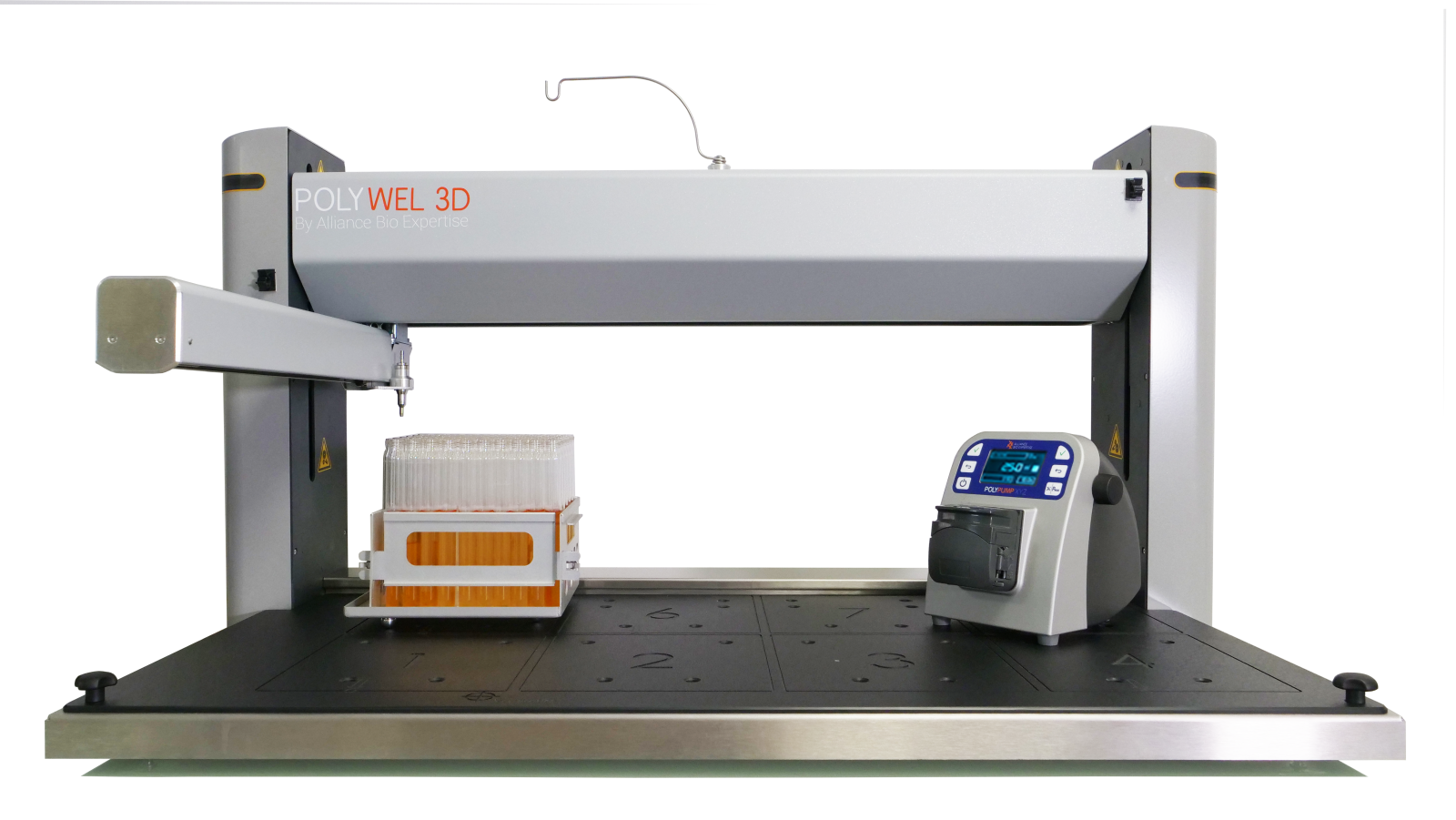 The POLYWEL 3D is a true walk-away dispensing system designed to be used in a modern laboratory to increase throughput. This device eliminates time-consuming, laborious tasks that could be creating a bottleneck in media production or tying up technicians for long periods of time.