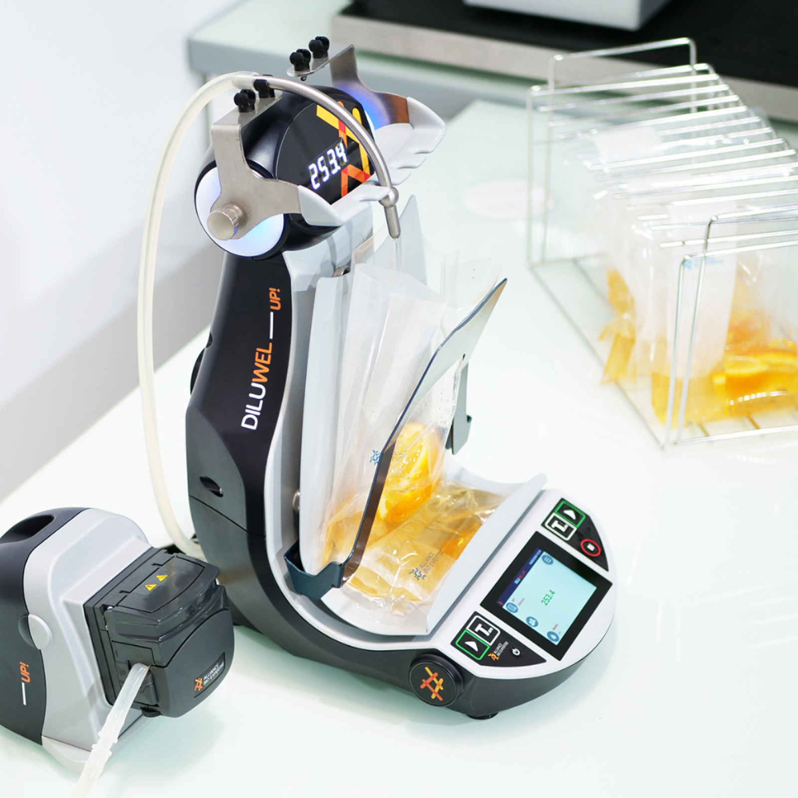 At only 6.9 kg, the DILUWEL UP! is light enough to be moved around the lab. It is also very easy to keep clean with a durable, stainless-steel bag holder and removable pump heads. Additional pumps can be added if required (up to 4 pumps in total); pumps have the ability to change direction.
