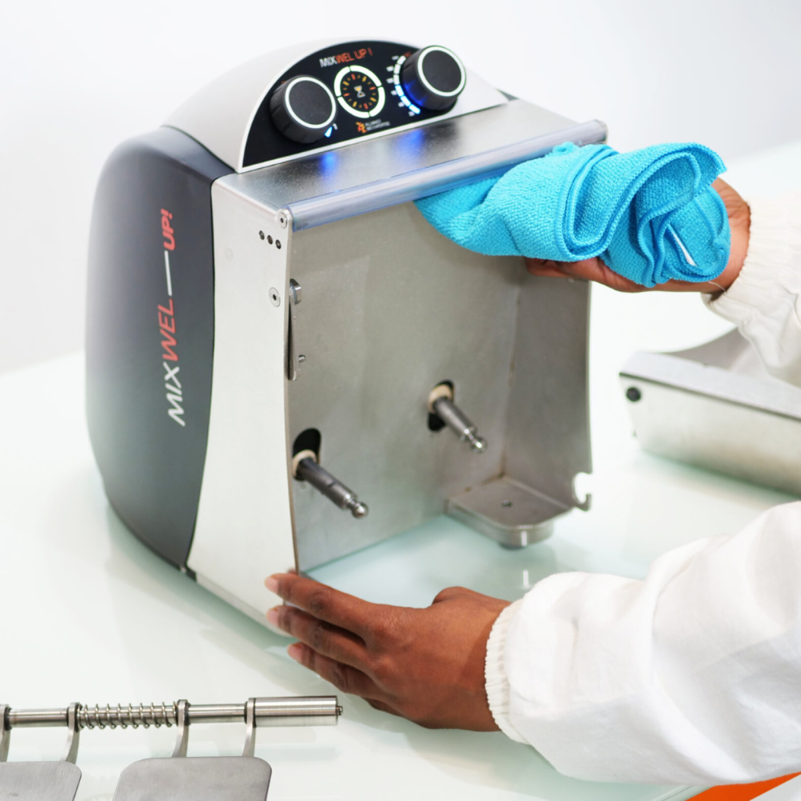 MIXWEL UP! is lightweight so is easy to move around. With curved paddles and progressive speed, it can adapt to all matrices. The paddles and doors are easy to remove to facilitate the cleaning process and, in addition, the door includes a waste tank to help catch any spillages.