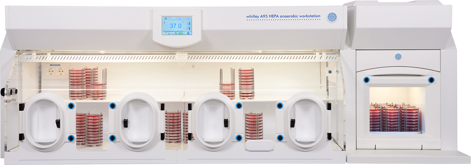 The Whitley A95 has a huge capacity of between 960 and 1120 x 90mm Petri dishes, depending upon the way you choose to configure your working and incubation areas. Incorporating the latest in touch screen technology, some features and benefits of the A95 are unique to DWS.