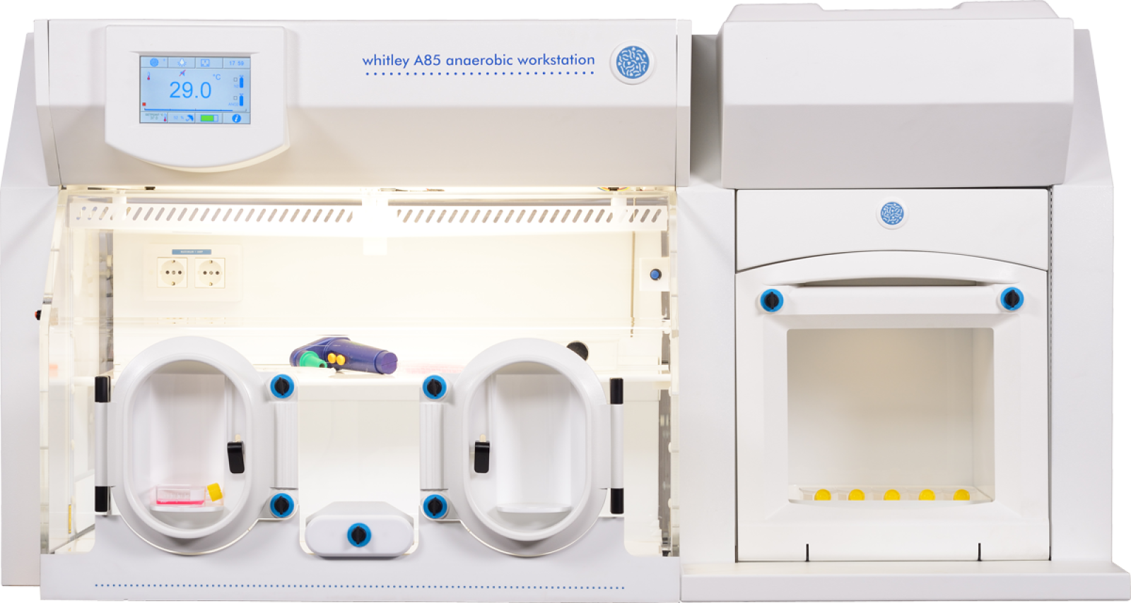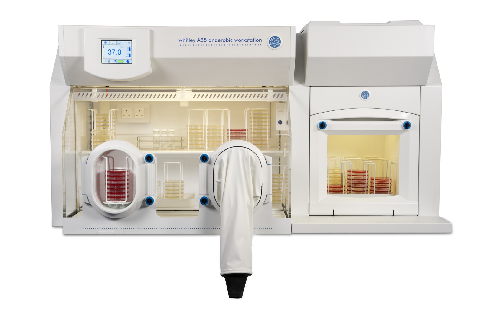 The Whitley A85 is used when there is a need to easily process, incubate and examine samples without exposure to atmospheric oxygen. This anaerobic workstation has a large, 36 litre airlock and accommodates up to 560 x 90mm plates. Oval glove ports enable you to work comfortably, gloved or bare handed. Each glove port also acts as a mini airlock so you can transfer up to 10 plates through each as you insert or withdraw your arms.